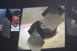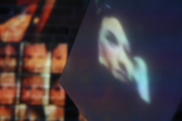 This also starts the process of displaying generative artworks using DCGAN tensorflow trained on datasets created by Cyrus, made up of selfies of sad faces scraped from social media, as well as BIGGAN. The artworks are projection mapped onto prepared acrylic squares using Processing.